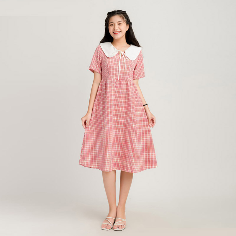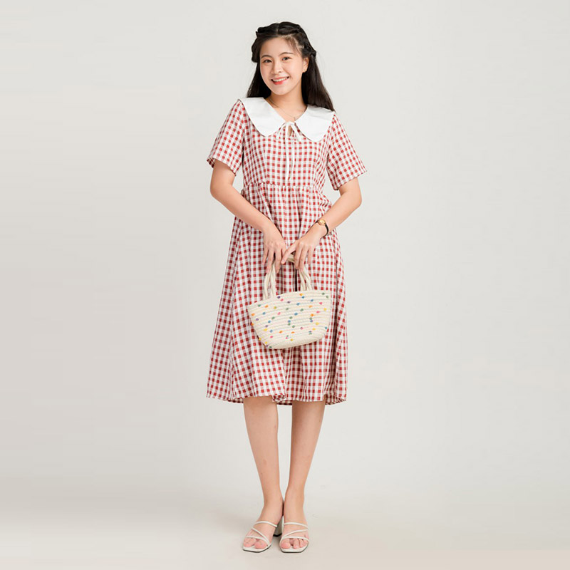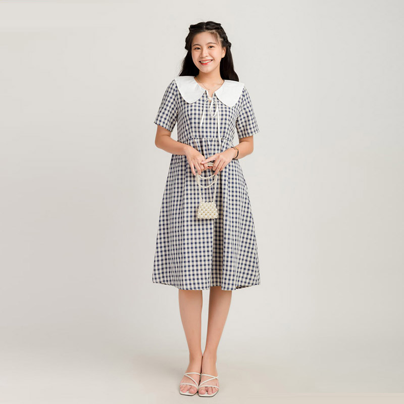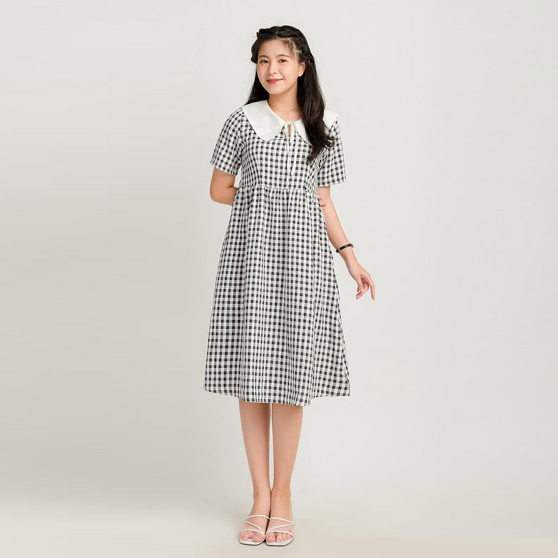 Váy Babydoll Nữ Caro Phối Màu